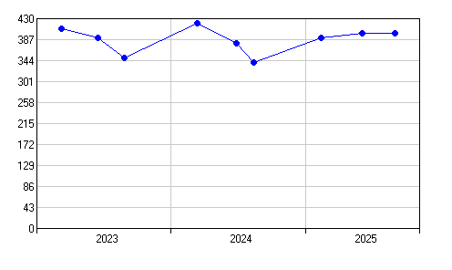 | Aika | Arvo | | 8.3.2023 | 410 | | 15.6.2023 | 390 | | 28.8.2023 | 350 | | 12.3.2024 | 420 | | 26.6.2024 | 380 | | 13.8.2024 | 340 | | 13.2.2025 | 390 | | 3.6.2025 | 400 | | 1.9.2025 | 400 |