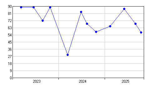 | Aika | Arvo | | 8.3.2023 | 89 | | 15.6.2023 | 89 | | 28.8.2023 | 72 | | 25.10.2023 | 89 | | 12.3.2024 | 29 | | 26.6.2024 | 83 | | 13.8.2024 | 68 | | 23.10.2024 | 58 | | 13.2.2025 | 65 | | 3.6.2025 | 87 | | 1.9.2025 | 68 | | 15.10.2025 | 57 |