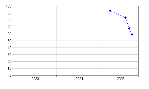 | Aika | Arvo | | 19.3.2025 | 94 | | 23.7.2025 | 84 | | 25.8.2025 | 68 | | 17.9.2025 | 59 |