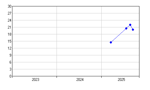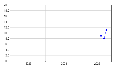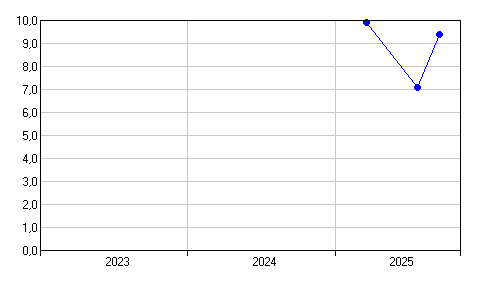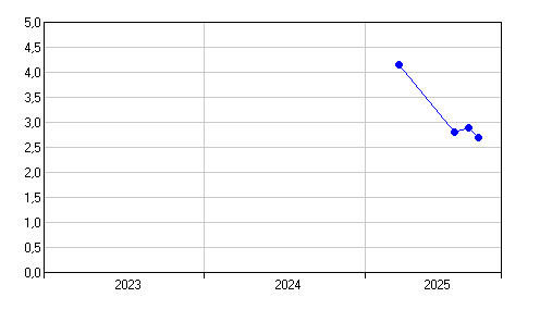 | Aika | Arvo | | 19.3.2025 | 14,5 | | 23.7.2025 | 20,5 | | 25.8.2025 | 22,0 | | 17.9.2025 | 20,0 |