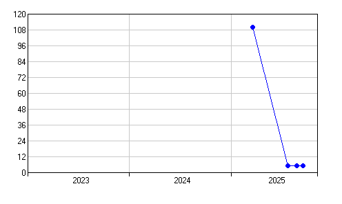 | Aika | Arvo | | 19.3.2025 | 110 | | 23.7.2025 | 5 | | 25.8.2025 | 5 | | 17.9.2025 | 5 |