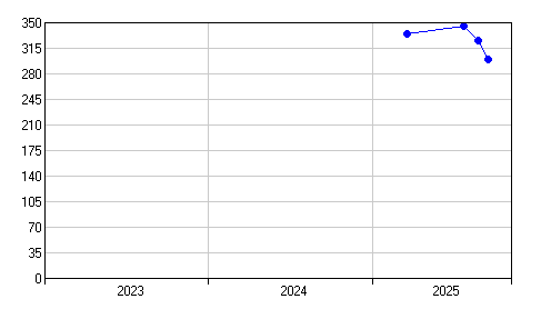 | Aika | Arvo | | 19.3.2025 | 335 | | 23.7.2025 | 345 | | 25.8.2025 | 325 | | 17.9.2025 | 300 |