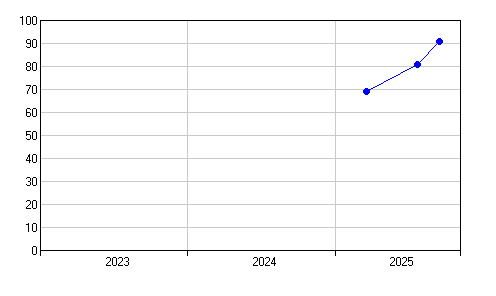 | Aika | Arvo | | 19.3.2025 | 69 | | 23.7.2025 | 81 | | 17.9.2025 | 91 |