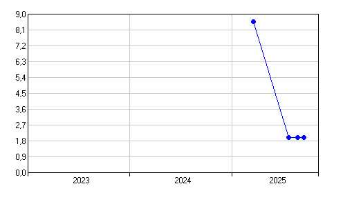 | Aika | Arvo | | 19.3.2025 | 8,6 | | 23.7.2025 | 2,0 | | 25.8.2025 | 2,0 | | 17.9.2025 | 2,0 |