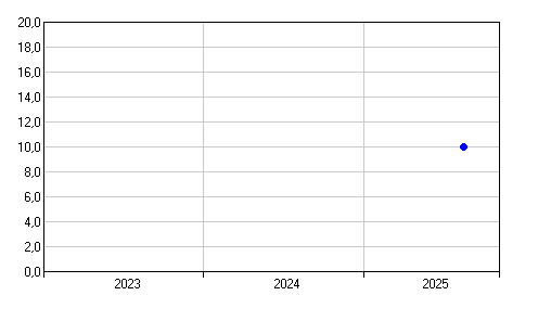 | Aika | Arvo | | 20.3.2023 | 22,0 | | 20.6.2023 | 55,0 | | 26.7.2023 | 87,0 | | 21.8.2023 | 90,0 | | 11.9.2023 | 77,0 | | 20.8.2024 | 94,0 | | 16.9.2024 | 98,0 | | 18.8.2025 | 120,0 |